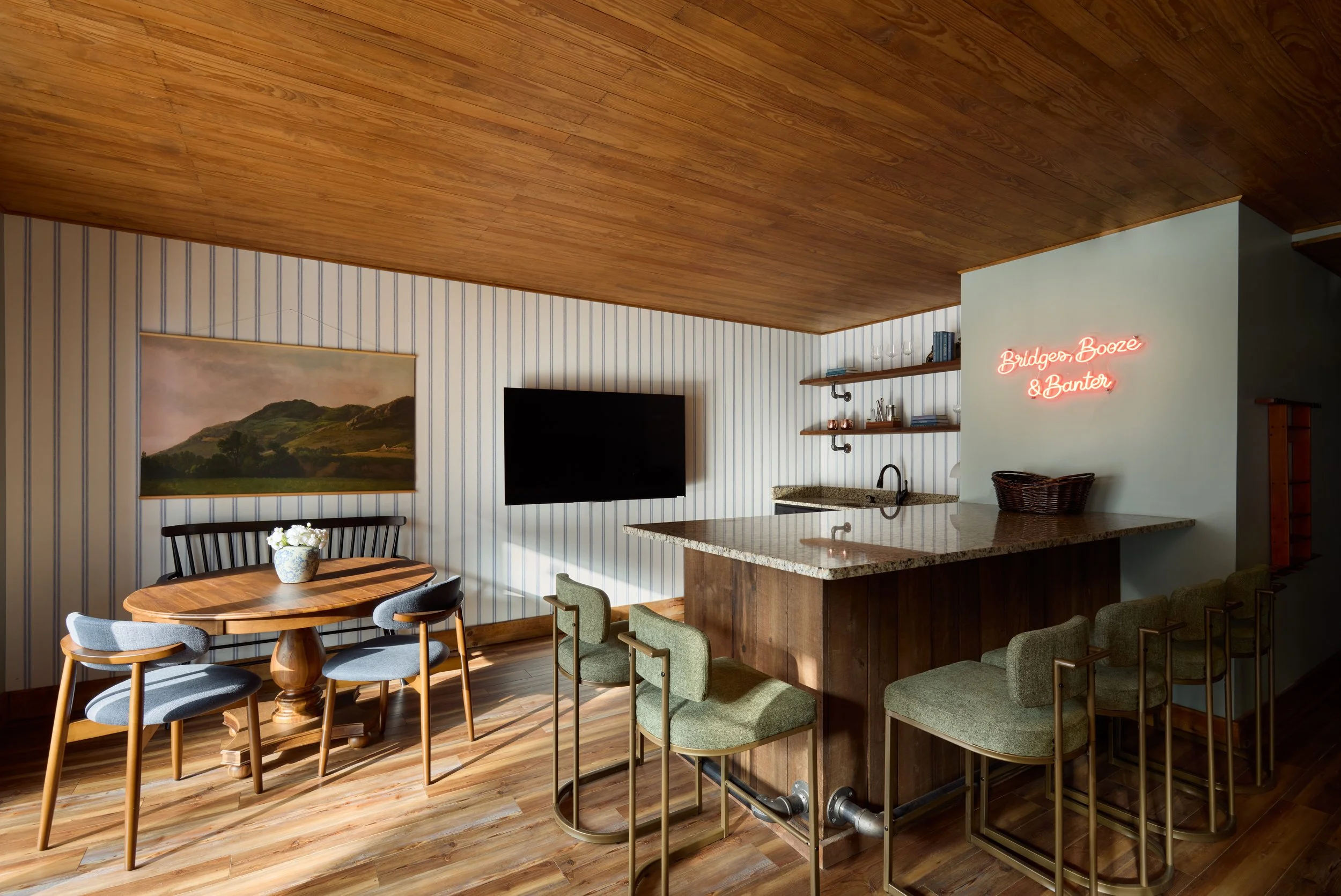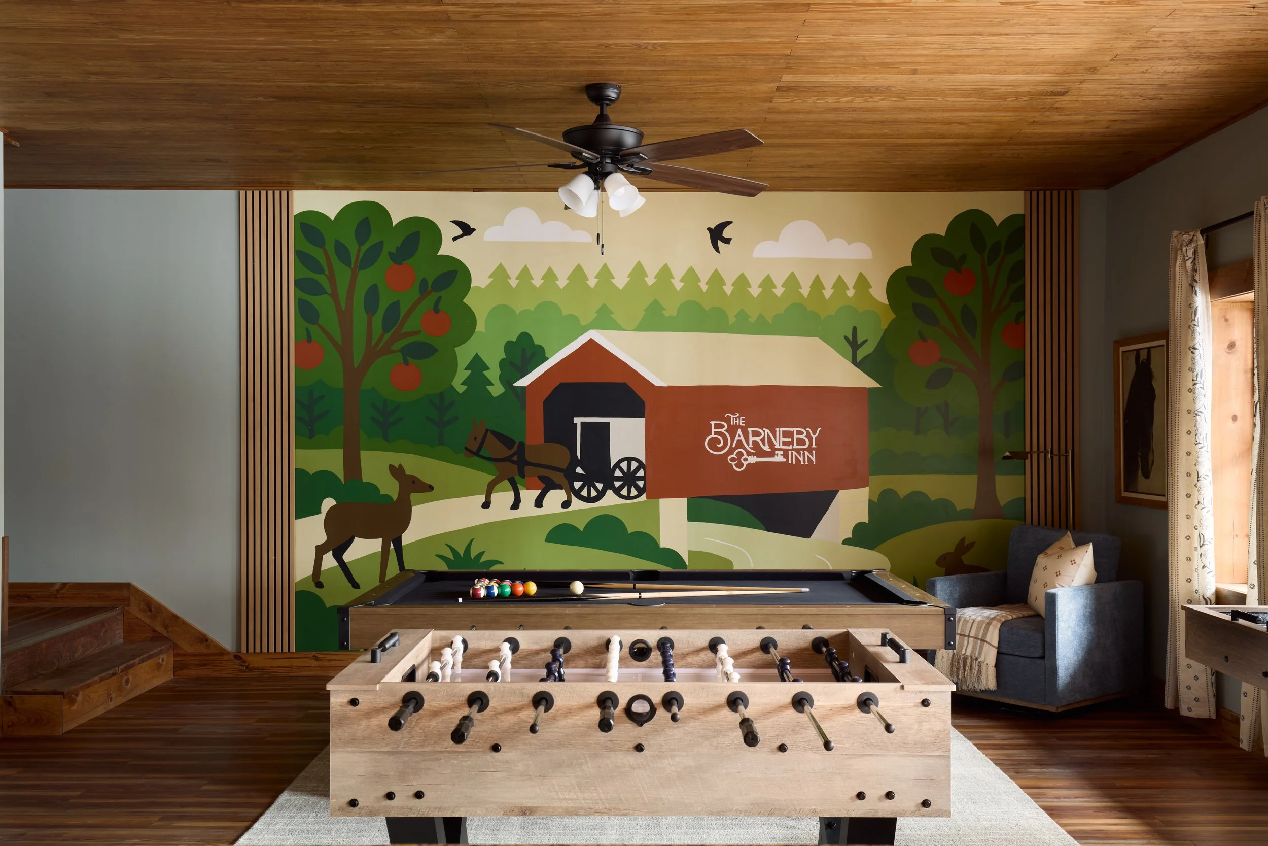 Welcome to The Barneby Inn, a luxury-cozy retreat in Lancaster designed for families and groups. Featuring six bedrooms and three and a half bathrooms, the home offers ample space to relax, gather, and recharge. Guests can enjoy a private hot tub, a fully equipped game room, a dedicated children’s play area, and peaceful surrounding views. A unique stargazing dome adds a memorable touch to the experience. Thoughtfully designed with modern comforts and warm details, The Barneby Inn is a stay made for meaningful moments.
